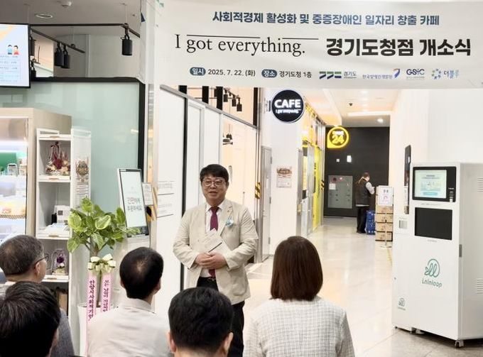 서현일보 기자 | 경기도의회 여성가족평생교육위원회 김재훈 의원(국민의힘, 안양4)은 7월 22일 경기도청 1층에서 열린 중증장애인 일자리 창출형 카페 ‘I got everything 경기도청점’ 개소식에 참석해 축사를 전하며 장애인의 자립을 응원했다.