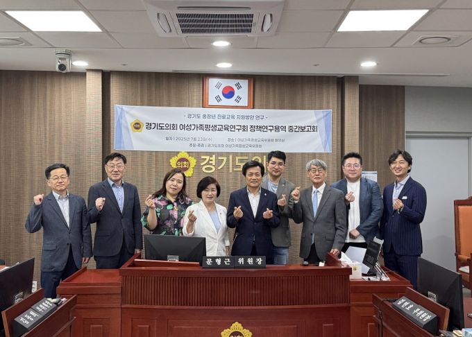 서현일보 기자 | 경기도의회 여성가족평생교육연구회(회장 문형근, 여성가족평생교육위원장)는 7월 23일 오후 2시 30분, 경기도의회 여성가족평생교육위원회 회의실에서 '경기도 중장년 진로교육 지원방안 연구' 중간보고회를 개최했다.