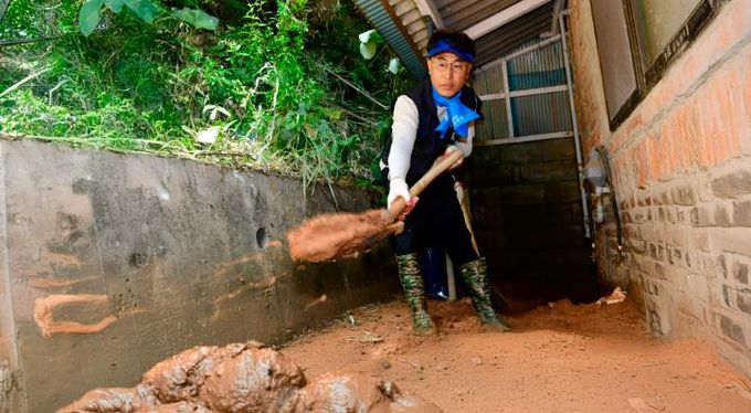 이날 박필순 의원과 의회사무처 직원 12명은 피해 현장을 찾아 피해 주택 뒷편 산에서 밀려 내려온 흙더미와 잔해물을 정리하고, 진입로 주변 토사 제거 및 정비 작업에 구슬땀을 흘렸다.