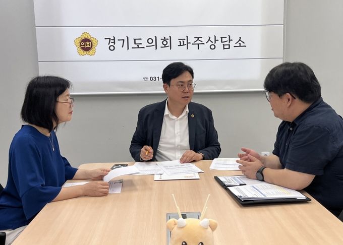 서현일보 기자 | 경기도의회 경제노동위원회 이용욱 의원(더불어민주당, 파주3)은 24일 파주상담소에서 파주고 체육관 및 급식실 증축을 비롯한 교육환경개선사업과 관련해, 학생들이 보다 나은 환경에서 학습할 수 있도록 사업을 세심하고 책임감 있게 추진해 줄 것을 파주시교육지원청에 당부했다.