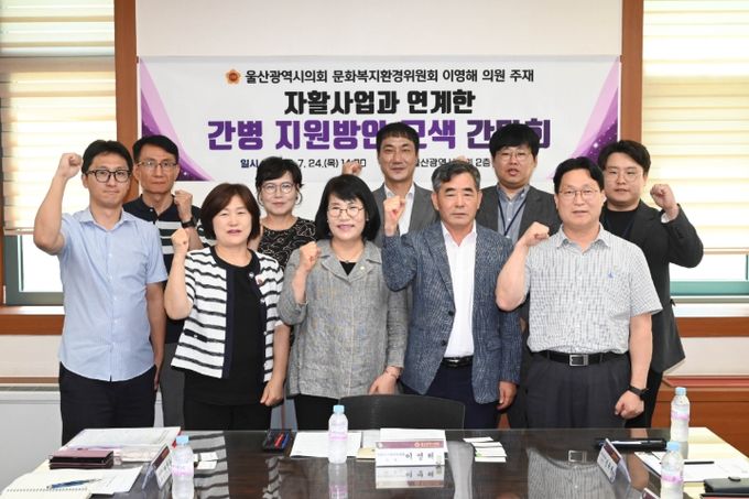 울산시의회 문화복지환경위원회 이영해 의원은 24일 오후 2시 시의회 2층 회의실에서 ‘자활사업과 연계한 간병 지원방안 모색 간담회’를 개최했다.