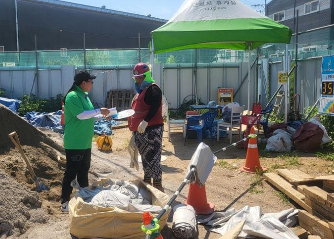 이날 방재단원들은 관내 야외 공사장과 논·밭 등을 찾아 쿨토시, 쿨스카프, 부채 등을 전달하며 폭염 시 충분한 휴식을 취하고 무더운 시간대에 작업을 자제할 것을 당부하는 등 행동 요령을 안내했다.