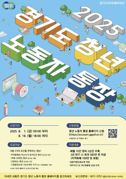 신청은 경기도 청년 노동자 통장 홈페이지에서 온라인으로 가능하며, 심사 기준표에 따라 고득점자 순으로 최종 선발한다. 선정 결과는 오는 10월 2일 해당 홈페이지를 통해 발표될 예정이다.