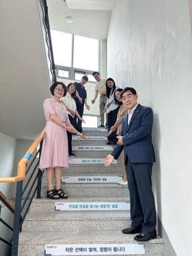 서강석 교육장은 “청렴 디딤돌은 계단을 딛는 일상 속에서 누구나 자연스럽게 청렴의 가치를 되새길 수 있도록 조성한 공간으로, 직원과 내방객 모두에게 청렴한 조직문화를 전파하는 계기가 될 것”이라고 말하며, 앞으로도 청렴한 진천교육 실현을 위한 다양한 참여형 청렴 활동을 지속적으로 추진해 나갈 계획이라고 밝혔다.