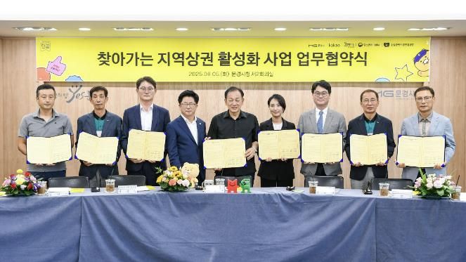 서현일보 한예원 기자 | 문경시는 지난 5일 디지털 전환을 통한 지역 상권 활성화를 추진하기 위해 ㈜카카오, (사)함께만드는세상, 소상공인시장진흥공단, 문경중앙시장상인회, 점촌전통시장상인회, 행복상점가상인회, 점촌역전상점가상인회와 업무협약(MOU)를 체결했다.