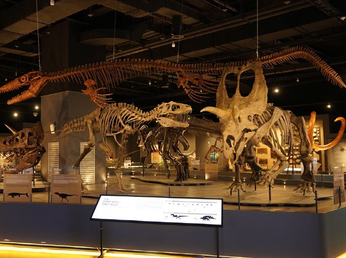 특히, 모형 옆에는 다양한 크기의 백악기 공룡 골격 전시품들이 배치돼 있어 피부까지 복원된 헤레라사우루스와 비교하면서 보는 재미를 느껴볼 수 있다.