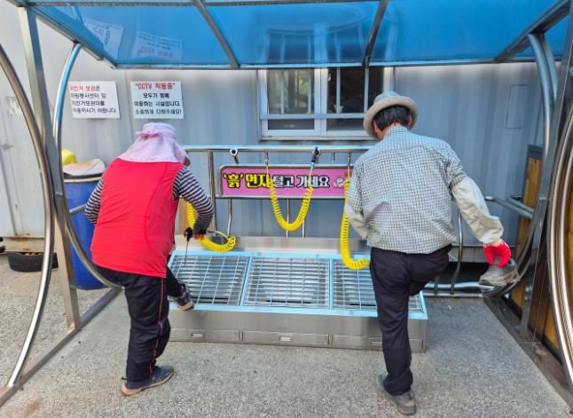 시는 운동 후 옷과 신발에 묻은 먼지를 간편하게 털 수 있도록 흙먼지털이기를 마련해 시민들의 편의를 높였다.