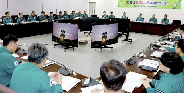 보고회는 상황총괄보고와 부서별 준비 상황보고 순으로 진행됐으며, 각 부서별 을지연습 목표와 준비사항을 공유하고 상호 협조 체계를 재점검하는 시간을 가졌다.