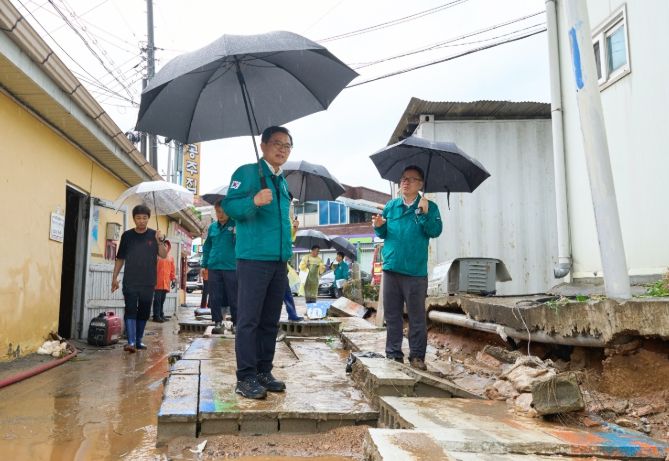 시는 지난달 18일부터 호우피해 지역에 인력과 장비 등을 투입해 지하 침수지 복구, 교통 통제, 농작물 복구, 피해주택 정리, 배수로 정비 등의 응급복구를 추진했다. 현재 호우피해 지역에 대한 응급복구율은 95%다.