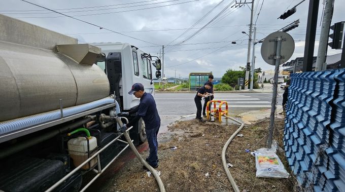 군은 증평군 경계 초평면 용기리에 소재한 소화전을 개방해 급수차로 약 600t의 생활용수를 공급했다.