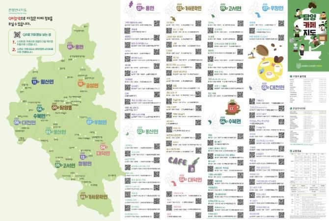 이번에 제작된 담양 카페지도는 읍·면별로 카페를 구분하고 상호명, 주소, 연락처 등 기본 정보를 한눈에 확인할 수 있도록 구성했다.