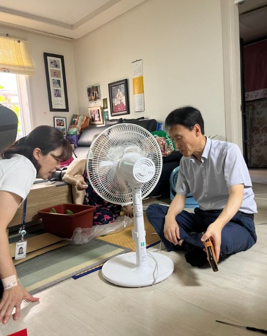 송림4동 찾아가는 복지팀은 각 가정에 선풍기를 직접 전달하고 설치해 드리며, 폭염대비 행동요령 안내문을 함께 배부하는 등 여름철 건강관리 정보도 함께 제공했다.