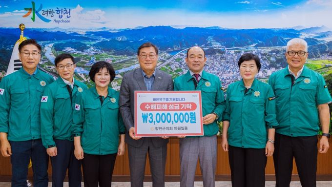 서현일보 한예원 기자 | 합천군의회는 7일, 지난 7월의 극한 호우로 입은 막대한 피해를 신속히 복구하고, 피해 주민들의 일상 복귀를 돕기 위해 수해복구 의연금 300만 원을 합천군에 기탁했다.