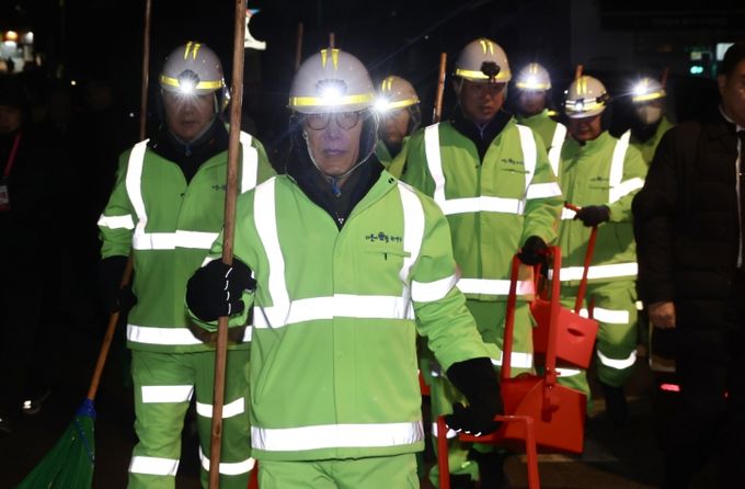 서현일보 라태규 기자 | 김민석 국무총리는 12월 26일 6시 30분경, 서울특별시 관악구 서원동 환경공무관 업무공간을 방문해 직접 거리를 청소하고 담소를 나누며 격려하는 시간을 가졌다.