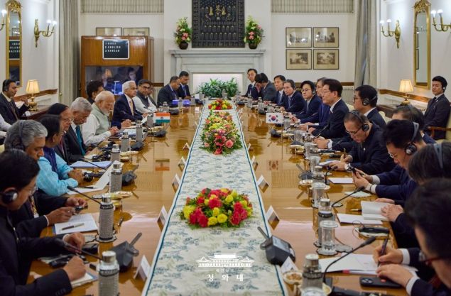 양 정상은 또 한반도 문제는 물론, 최근 중동 상황 등 급변하는 국제정세 속에서 한국과 인도가 국제 평화와 안정에 기여하고, 나프타 등 핵심 원자재 수급은 물론 주요 에너지 수입국으로서 공조하는 방안에 대해서도 의견을 나눴다.