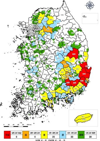 피해 정도가 극심․심지역이 지난해 7개에서 올해 10개로 늘어났으며, 이 지역의 감염목은 총 91만 그루로 전체 발생의 65%를 차지하고 있다.