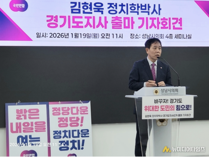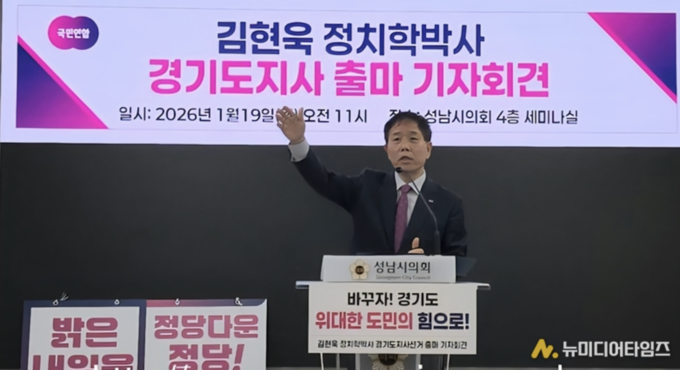 국민연합 김현욱 대표가 제9회 전국동시지방선거 경기도지사 출마를 공식 선언하며 '혁신과 개혁의 경기도 시대를 약속했다. 김 대표는 19일 오전 11시 성남시의회 4층 세미나실에서 기자회견을 열고, "거대 독과점 양당제를 청산하고 패거리 정치문화를 타파하여 나라와 경기도민을 살리겠다"는 포부를 밝혔다.