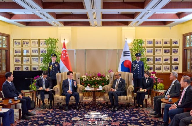 서현일보 라태규 기자 | 싱가포르를 국빈 방문 중인 이재명 대통령은 3월 2일 오전 한-싱가포르 정상회담에 앞서 '타르만 샨무가라트남(Tharman Shanmugaratnam)' 대통령과 면담을 갖고, 양국 관계 발전 방안에 대해 논의했다.