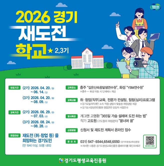 서현일보 라태규 기자 | 경기도와 경기도평생교육진흥원은 취업이나 창업 실패를 경험한 도민의 재기를 지원하기 위해 오는 20일부터 ‘2026년 경기 재도전학교’ 2~3기 참가자를 각각 55명 내외로 모집한다.