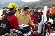 서현일보 라태규 기자 | 이재명 대통령은 6일 오후 강원도를 방문해 관·군의 산불 진화 장비와 대응체계를 점검한 뒤, 동해안 산불 위험 지역을 시찰했다. 이 대통령은 취임 직후부터 관계기관에 가용 가능한 자원을 총동원하는 등 강력한 산불 진압 초기 대응체계를 마련하라고 거듭 지시해 왔다. 이번 방문은 이러한 대통령 지시사항의 이행 상황을 직접 점검하기 위해 실시된 것이다. 이 대통령은 먼저 강원 원주시에 위치한 산림청 산림항공본부를 찾아 산림청과 군(軍)의 산불 진화 헬기, 드론, 차량 등 핵심 장비를 점검했다. 현장을 둘러본 이 대통령은 "산불이 발생했을 때 초기에 신속하게 대응할 수 있도록 현장의 1차 책임을 명확히 하라"고 지시했다. 또한 "산불 대응 관련 예산과 사업은 국민이 납득할 수 있도록 투명하고 효율적으로 운영하라"고 말하면서도, "산불 대응에 있어서는 '아깝다'고 생각하지 말고 초기부터 전력으로 대응하라"고 당부했다. 이어 이 대통령은 산림청과 국방부의 ‘산불 진화 합동훈련’을 참관했다. 훈련은 헬기 레펠을 이용한 공중 진화, 드론을 활용한 정밀 진화, 헬기 물 투하 등의 순서로 진