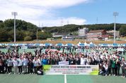 서현일보 한예원 기자 | 이상일 용인특례시장은 21일 용인미르스타디움 보조경기장에서 열린 ‘2025 처인구민 한마음체육대회’에 참석했다. 이날 대회엔 이상일 시장을 비롯해 처인구 13개 읍면동 선수단과 주민 등 1000여 명이 참석했다. 이 시장은 대회 개회식에서 생활체육 활성화하는 데 이바지한 주민 13명에게 시장 표창을 수여하고, 행사장에 마련된 13개 읍면동을 돌며 대회에 참가한 선수단과 주민들과 소통하는 시간을 가졌다. 이 시장이 이날 4시간 이상 행사장에 머물며 시민들과 인사하고 대화를 나눴다. 이상일 시장은 축사를 통해 ”처인구민들이 오랜만에 한자리에 모여서 친목을 다지고, 여러 운동종목을 통해 건강도 증진하는 체육대회가 열리게 된 것을 진심으로 축하드린다“며 ”멋진 승부를 벌이시고 행복한 시간 많이 보내시기 바란다“고 말했다. 이 시장은 ”2040년 도시기본계획에서 용인시 인구는 152만 명까지 늘어날 것으로 추정됐고, 그중 처인구 인구는 50만 명이 넘을 것으로 전망된다“며 ”이같은 전망에 따라 시는 처인구 교통망과 교육시설, 문화‧체육시설 등의 확충을 위해 노력하고 있다“고 했다.