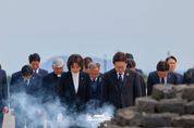 서현일보 라태규 기자 | 이재명 대통령과 김혜경 여사는29일 오전, 제주 4·3 평화공원을 찾아 영령들께 참배하고 유족들과 함께하는 시간을 가졌다. 이번 방문은 국가기념일인 ‘제주 4·3 희생자 추념일’을 앞두고 이루어진 것으로, 이 대통령 내외는 헌화와 분향을 통해 희생자들의 넋을 기렸다. 이어 이 대통령 내외는 희생자 15,126위의 위패가 모셔진 ‘위패봉안실’과 4·3 당시 행방불명되어 시신조차 찾지 못한 희생자들의 표석이 설치된 ‘행방불명인 표석’을 찾아 희생자들을 추모했다. 이 대통령은 위패봉안실에서 나와 방명록에 ‘제주 4·3을 기억하며 국가폭력의 재발을 막기 위해, 민형사 시효제도를 폐기하겠습니다.“라고 남겼다. 이 대통령이 방명록을 작성하는 모습을 지켜보던 임문철 제주4·3평화재단 이사장을 비롯한 관계자들은 문구를 보고 박수로 호응했다. 참배 이후 이 대통령 내외는 제주 4·3 희생자 유족들과 오찬을 함께하며 아픔을 나누고 위로하는 시간을 가졌다. 오찬 간담회에는 윤호중 행정안전부 장관과 오영훈 제주도지사, 김한규·문대림·위성곤 국회의원을 비롯해