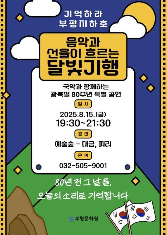 서현일보 한예원 기자 | 부평구 부평문화원은 오는 15일 광복절을 맞아 부평지하호에서 여행 프로그램 ‘기억하라, 부평지하호 – 음악과 선율이 흐르는 달빛기행’을 개최한다고 밝혔다.