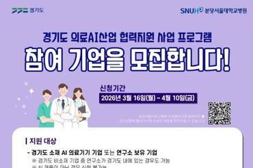 경기도, 인공지능 의료기기 개발·상용화 지원. 참여기업 모집