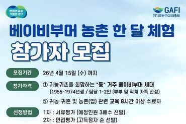 경기도, '베이비부머 농촌 한 달 체험' 참가자 모집