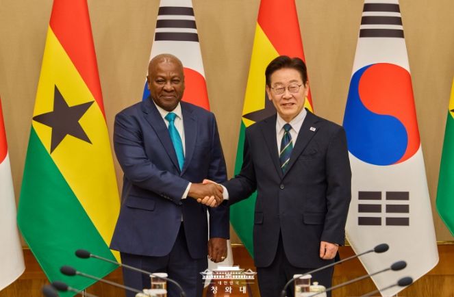 서현일보 라태규 기자 | 이재명 대통령은 11일 오후 우리나라를 실무 방한한 존 드라마니 마하마 가나 대통령과 정상회담을 가졌다고 강유정 청와대 대변인이 서면 브리핑을 통해 밝혔다.