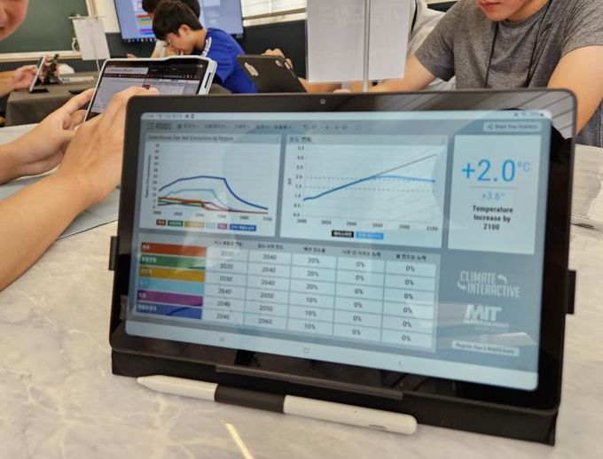 ‘기후정상회담’은 고등학생이 각국 기후 협상 대표 역할을 맡아 국제 기후정책 협상 과정을 체험하는 시뮬레이션 프로그램이다. 참가 학생들은 인공지능을 활용해 기후 관련 정보를 탐색하고, 국가별 입장을 정리한 뒤 기후위기 대응 전략을 모색하게 된다.