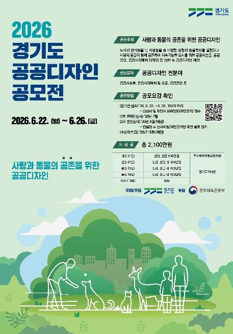 서현일보 라태규 기자 | 경기도가 ‘사람과 동물의 공존을 위한 공공디자인’이란 주제로 제20회 ‘2026년 경기도 공공디자인 공모전’을 6월 22일부터 26일까지 개최한다.